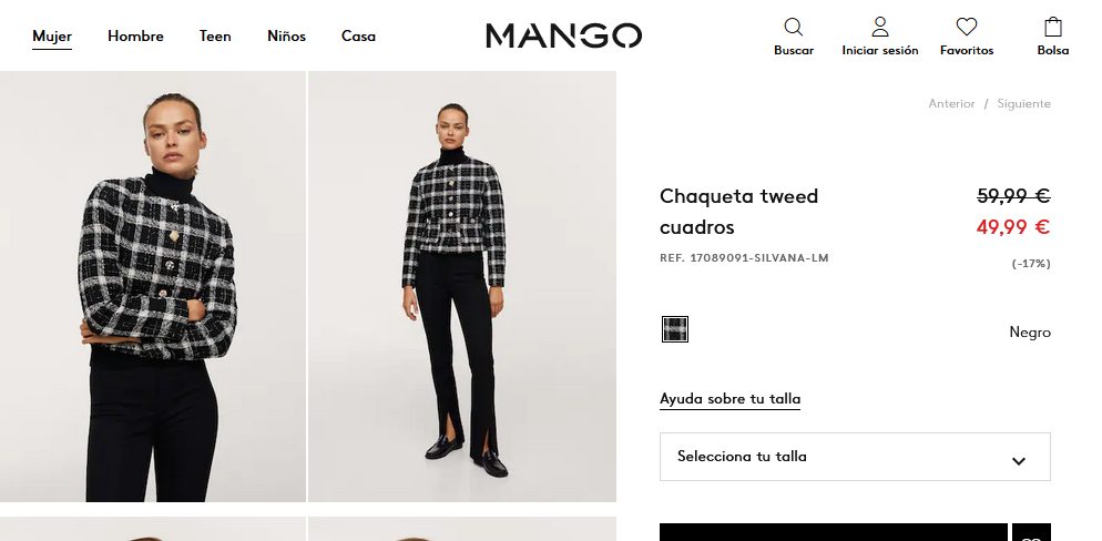 Es otra de las chaquetas de la tienda que cuenta con un tejido tweed. Además, tiene un diseño de cuadros, recto y corto. Cuenta con un cuello redondo y manga larga para una mejor comodidad. Inclusive, tiene un cierre de botones en la parte delantera y que tiene un efecto joya. Para una mejor comodidad la chaqueta tiene un forro interior. Entonces, si lo desean comprar solo tienen que entrar a Mango por un precio de 49,99 €.