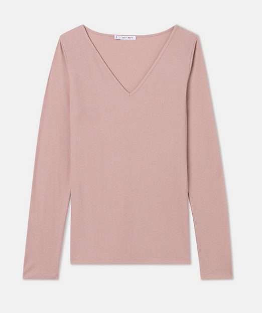 Por último y también de la marca Easy Wear de El Corte Inglés, queremos destacar esta bonita camiseta de canalé y manga larga que se ajusta al cuerpo como una segunda piel. El cuello tiene forma de pico bastante amplio, perfecto para complementar con algún accesorio como collares o gargantillas. Es de manga larga y está confeccionada en poliéster, viscosa y elastano. Está disponible en colores rosa claro, gris claro y crudo, y con el 50% de descuento la puedes tener por 4,99€. Aquí tienes el link.