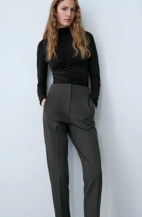 Deslumbra en cualquier evento con este elegante Pantalón tiro alto que traen las tiendas Zara para ti. Con delicados detalles de costura marcada en su parte delantera y trasera, con bolsillos en sus laterales.