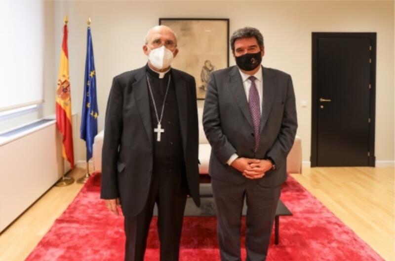 El vicepresidente de la Conferencia Episcopal Española (CEE) y cardenal arzobispo de Madrid, Carlos Osoro, y el ministro de Inclusión, Seguridad Social y Migraciones, José Luis Escrivá, han abordado este lunes, en una reunión en la sede del Ministerio, los problemas de los migrantes y la necesidad de los itinerarios de inclusión para los más vulnerables, muchos de ellos beneficiarios del Ingreso Mínimo Vital (IMV).