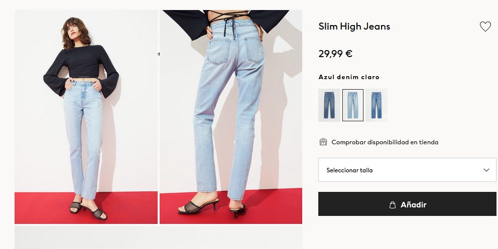 Es un increíble vaquero de cinco bolsillos en denim lavado de algodón, perfecto para usar en cualquier temporada del año. Además, es uno de los modelos de talle alto con cierre de cremallera y botón. Inclusive, cuenta con unas perneras ajustadas de corte recto para que sea más cómodo de usar en todo momento. Entonces, si desean comprar estos vaqueros solo tienen que entrar a H&M por 29,99 €.