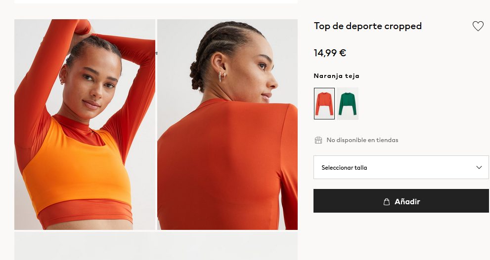 Es un top de deporte cropped en punto con función de secado rápido para absorber el sudor. Inclusive, es perfecta para mantener el frescor durante la práctica deportiva. Además, es uno de los modelos entallados con cuello elevado corto y mangas largas ceñidas. Siendo una de las prendas deportivas preferidas de las mujeres. Si desean comprar esta prenda solo tienen que entrar a H&M por 14,99 €.