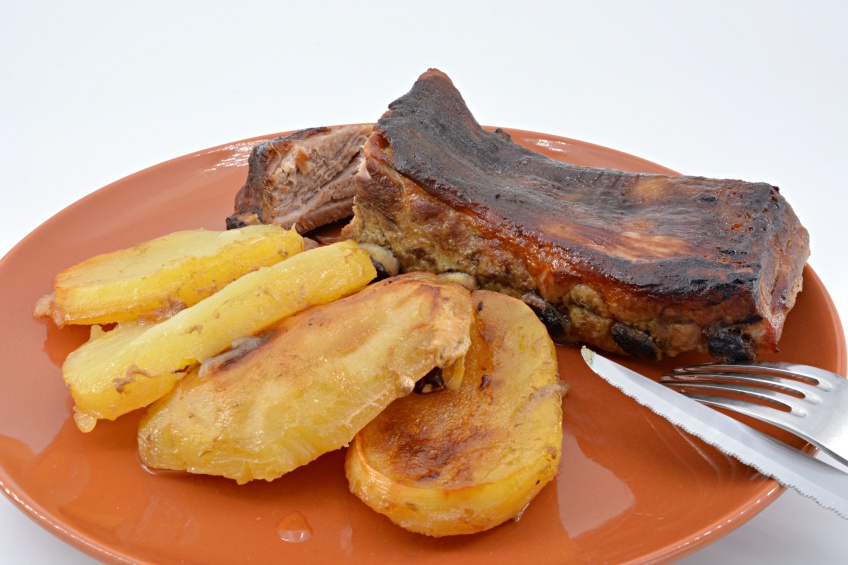 Una vez cocinada, retiramos las costillas con miel y mostaza del horno y cortamos las porciones. Se tiene que servir inmediatamente para comer caliente y recién hecho.