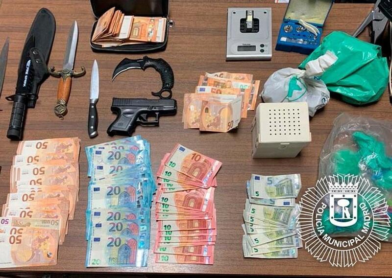 Finalmente, los agentes detuvieron a ocho personas acusados de robo con violencia, detención ilegal, posesión de arma de fuego y delito contra la salud pública. Asimismo, requisaron en el lugar cocaína, hachís, marihuana y heroína, un total de 4.571 euros, básculas de precisión, agenda con anotaciones, un machete de 20 centímetros y un arma de fogueo.