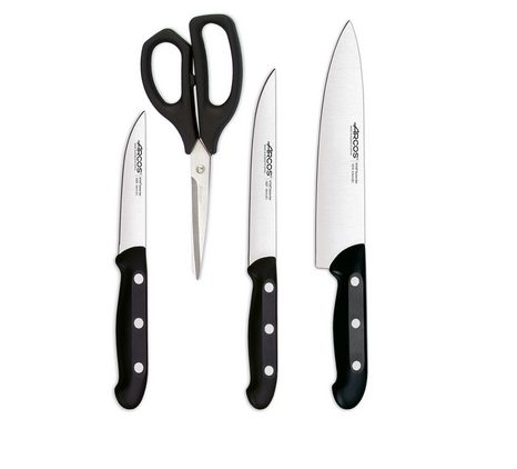 Contar con buenos cuchillos en la cocina puede facilitar mucho el proceso en cada receta. Puede hacer incluso que lloremos menos al cortar la cebolla. La marca Maître Arcos nos ofrece este completo juego de cuchillos con un diseño redondeado y fáciles de manejar. El set está compuesto por un cuchillo para verduras, uno de cocina de 15 cm de hoja, uno de cocinero de 21,5cm y unas prácticas tijeras. Las hojas son de acero inoxidable endurecido mediante una técnica patentad por la marca que le aporta dureza y resistencia a la corrosión. En El Corte Inglés tienen un 30% de descuento y salen por 34,96€. Aquí está el link.