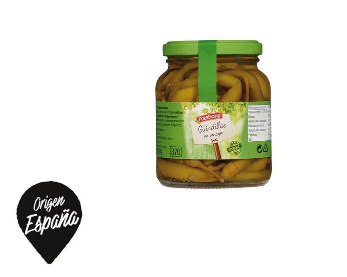 También están en oferta las guindillas en vinagre, un delicioso snack para picar entre horas o incluir en un rico aperitivo. Son bajas en grasas y azúcares, y no tienen gluten, por lo que son aptos para personas con intolerancia. Tienen un elevado contenido en sal por lo que se recomienda consumir con moderación. Se venden en tarros de cristal de 370 ml y esta semana tienen un precio de 0,96€.