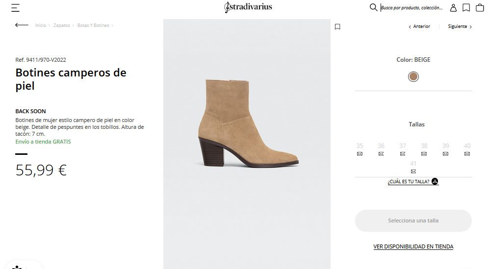 Es uno de los botines de mujer que cuenta con un estilo campero de piel en color beige. Por lo que, es uno de los preferidos de muchas porque ofrece ese estilo increíble en todo momento. Además, tiene unos detalles de pespuntes en los tobillos y la altura del tacón es 7 cm. Entonces, si desean comprar estos botines solo deben entrar a Stradivarius por 55,99 €.