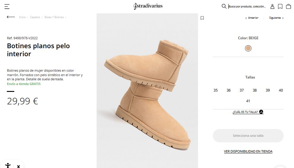 Los botines planos de mujer están disponibles en color marrón, por lo que es perfecto para crear ese estilo perfecto. Además, estos están completamente forrados con pelo sintético en el interior y en la planta. Inclusive, tiene unos detalles de suela dentada para un mejor estilo. Entonces, si desean comprar esta prenda solo deben entrar a Stradivarius por un precio de 29,99 €.