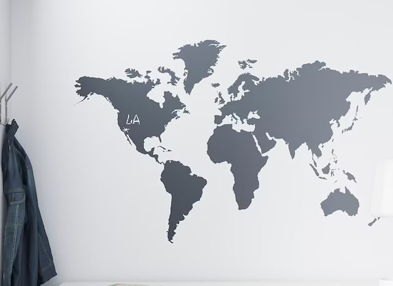 Es un mapa del mundo que, además de ser decorativo al colocarlo sobre la pared u otra superficie, se puede usar a modo de pizarra de cara a la planificación de tus viajes. No se puede utilizar sobre superficie delicadas como el papel tintado, ya que se puede dañar al retirarlo.
