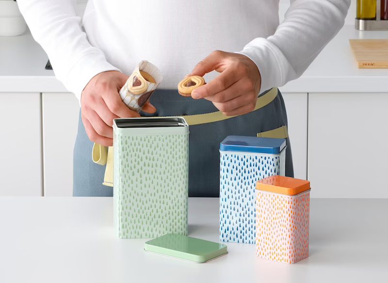 Aunque pueda tener cierta utilidad, uno de sus productos menos interesantes es este juego de tres botes con tapa VARFEST que incluyen motivos en diferentes colores y tamaños. Su precio de venta es de 3 euros por el kit de tres piezas.