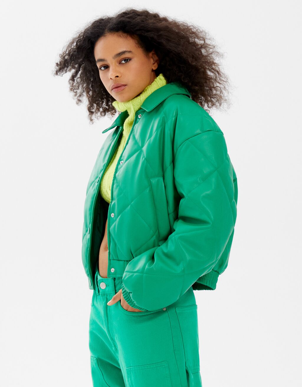 A pesar de lo que pueda parecer, todavía es pronto para deshacerse de la cazadora. Por ello, desde Bershka lanzan propuestas cada vez más atrevidas como esta. Se trata de una cazadora acolchada, de las más calentitas, en un llamativo tono verde que te encantará. Con un precio de 35,99 euros, se convertirá en una de tus mejores inversiones.