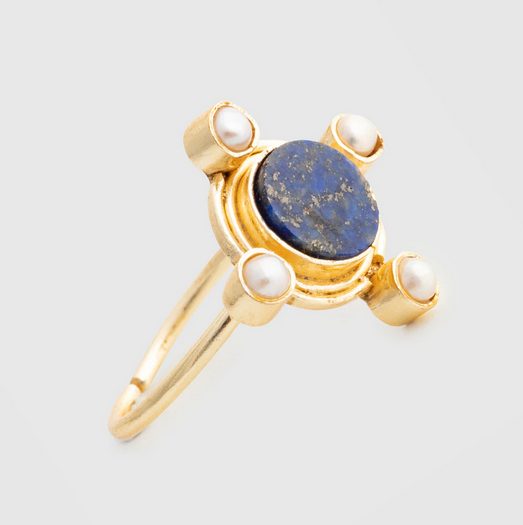 En cuanto a anillos de El Corte Inglés, no podemos dejar de destacar este bonito diseño en dorado, con una piedra natural de lapislázuli enmarcada con cuatro perlas blancas. Un diseño de gran elegancia para combinar con tus looks más estilosos.
