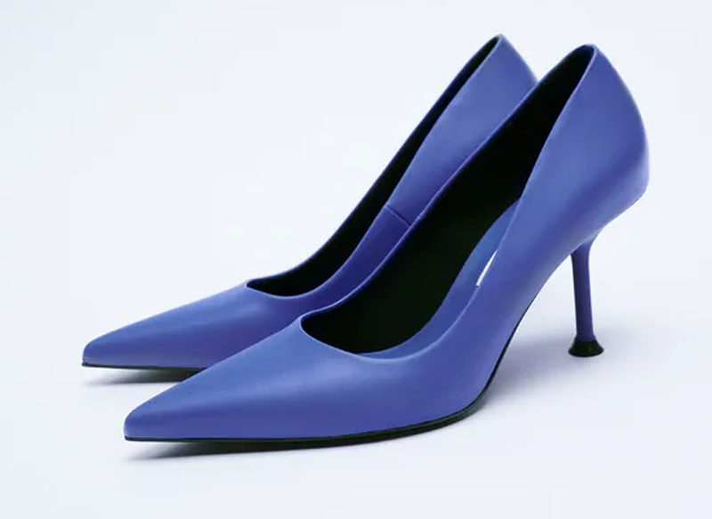 Este zapato tacón salón, que se encuentra disponible en color azul, blanco y verde, es un modelo de calzado con tacón fino de 8 cm de altura y un acabado en punta. Posee una plantilla técnica flexible de espuma compuesta de látex Airfit.
