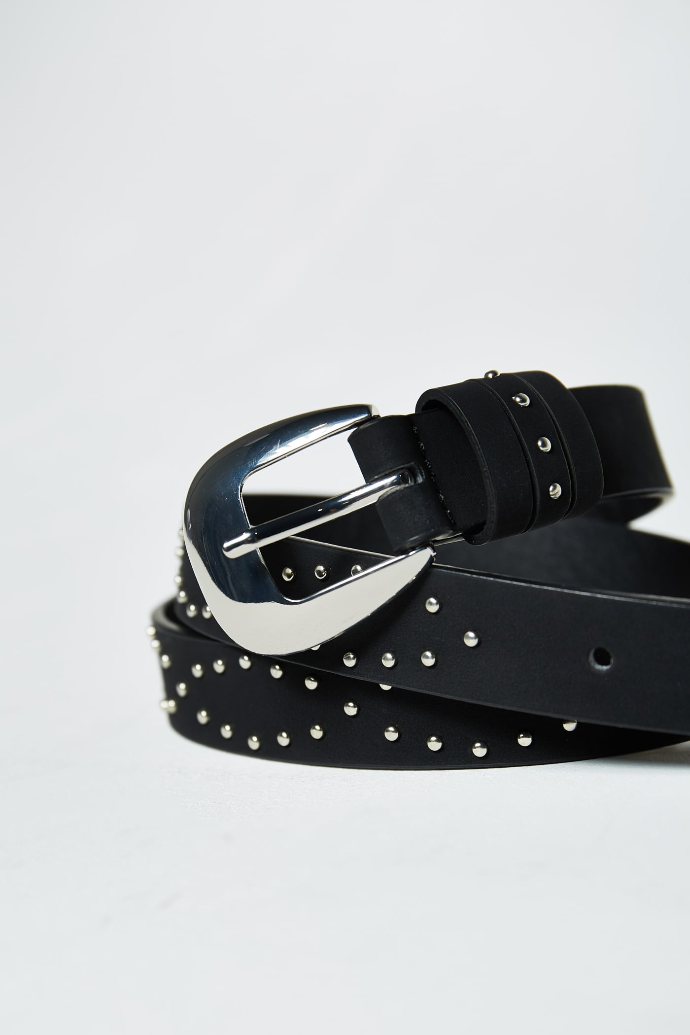 Para lucir y modelar tu cintura, busaca en las tiendas Sfera el Cinturón tachas, fácil de colocar en alguno de tus jeans con trabillas y jugar con el contraste de colores entre el pantalón y el cinturón.