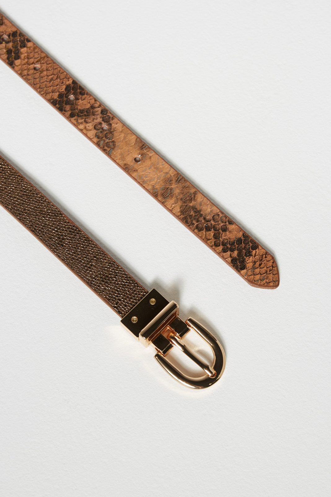 Visita las tiendas Sfera y busca el Cinturón reversible pitón, son dos cinturones en uno, muy fácil de combinar, con un delicado brillo sobre su vistoso colorido. Cuando lo modeles te sentirás diferente, es un cinturón multicolor con un estilo casi único.