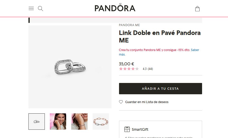 Está formado por dos links en plata de primera ley entrelazados y embellecidos con cristales brillantes. Tienes que añadirlo entre dos conectores que se abran, ya que estos links dobles no se abren. Añádelo a tus pulseras de cadena de eslabones, collares o pendientes de Pandora ME para crear tu propia joya, tu propio estilo único. Si desean comprar esta prenda solo tienen que entrar a Pandora por 35,00 €.