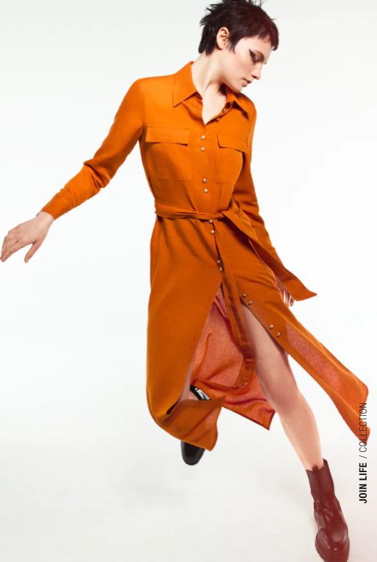 A pesar de que las prendas llamativas están llamadas a triunfar de cara a la nueva temporada, también hay espacio para las más clásicas. En este sentido, destaca este bonito vestido camisero de Zara, de corte midi y diseño con pespuntes, con el color anaranjado que todas buscan. Con un precio de 45,95 euros, sin duda merecerá la pena.
