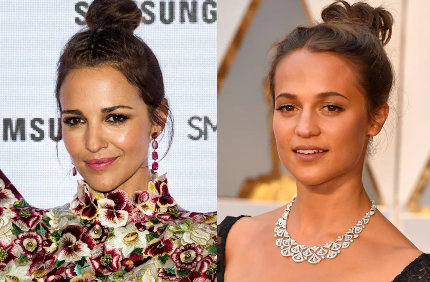 A Paula Echevarría le sucede, de nuevo, como a Clara Lago: también tiene a su propia doble en Hollywood. En esta ocasión, la actriz que se parece a la celebrity española es Alicia Vikander, a la que hemos podido ver en infinidad de ocasiones. De rasgos dulces y estilo clásico, ambas podrían pasar por hermanas sin problema.