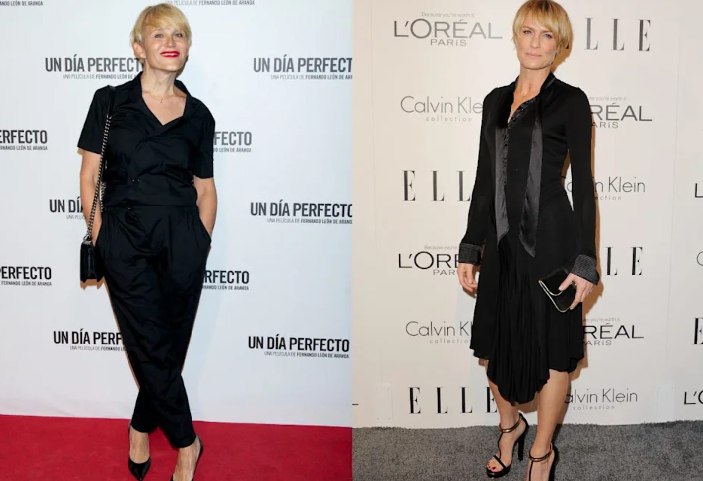 Otro de los parecidos razonables entre famosos de España y otros que se encuentran al otro lado del charco lo tenemos en Antonia San Juan y Robin Wright. La protagonista de «House of Cards» y nuestra querida actriz parecen hermanas separadas al nacer, cosa que crece todavía más al verlas con el mismo estilo de peinado y outfits similares, siempre apostando fuerte al negro.