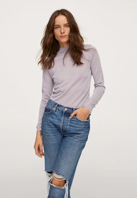 Visita una de las tiendas Mango y busca el jersey punto brillante, una prenda diseñada para la mujer moderna, activa, que siempre desea estar a la moda y lucir elegante. En diseño recto, algo ajustado a tu silueta, cuello redondo y con sus mangas largas.