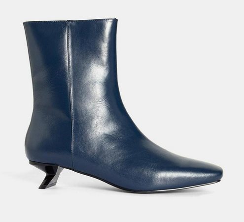 Si buscas algo realmente original, estos botines de Adolfo Domínguez se convertirán en la pieza más espectacular de tu armario. Son de piel en un bonito color azul y con un práctico cierre de cremallera. Está fabricado en napa, tiene la punta cuadrada y un tacón medio con una forma muy especial que recuerda a una escultura. La caña es baja y la suela es de caucho, cómoda y antideslizante. La plantilla es de piel con memory foam para el mejor confort en cada pisada. Tienen un 63% de descuento y cuestan 69€. Las puedes comprar aquí.