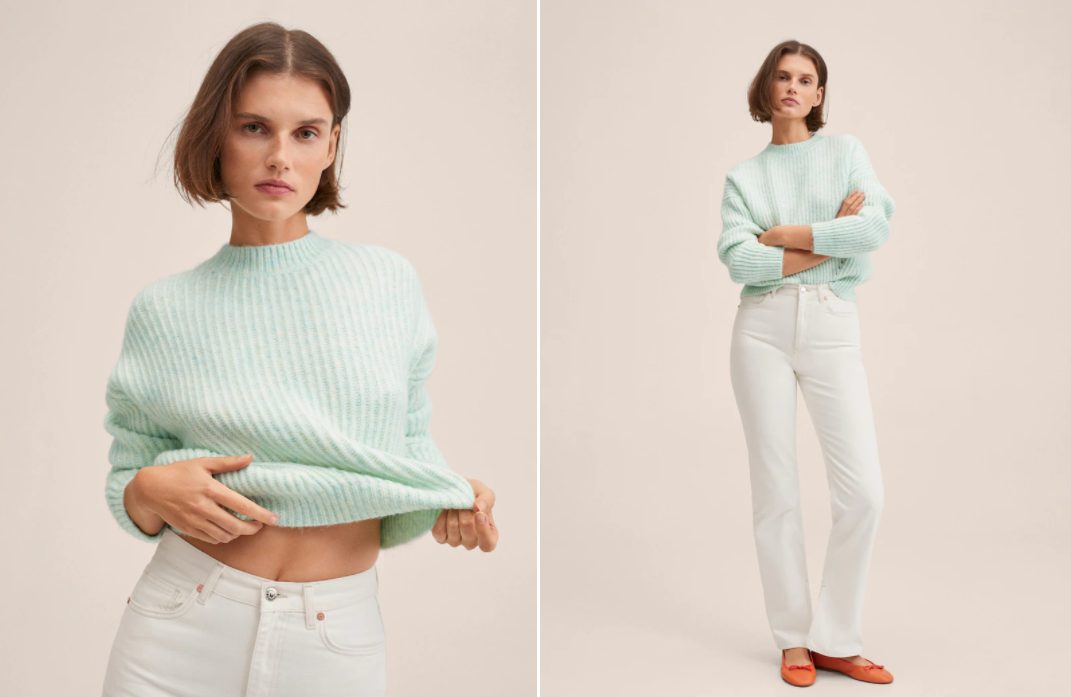 Para aquellas que se resisten a dejar un lado el frío, este jersey de punto grueso puede ser la mejor solución. Con un bonito tono verde menta, cuello a la caja y manga larga, será ideal para crear todos los conjuntos que imagines. Además, ahora lo puedes conseguir en Mango por solo 25,99 euros cuando antes costaba 29,99. No te arrepentirás.