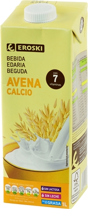 En Eroski también podemos encontrar otra de las bebidas vegetales mejor valoradas por la OCU. En este caso, hablamos de la bebida de Avena con Calcio. El alimento de moda se transforma en bebida unido con agua, aceite de girasol, carbonato de calcio, sal marina y diversas vitaminas como la A, la D, la E, la B6 o la B12. El formato de un litro sale a 1,30 euros.