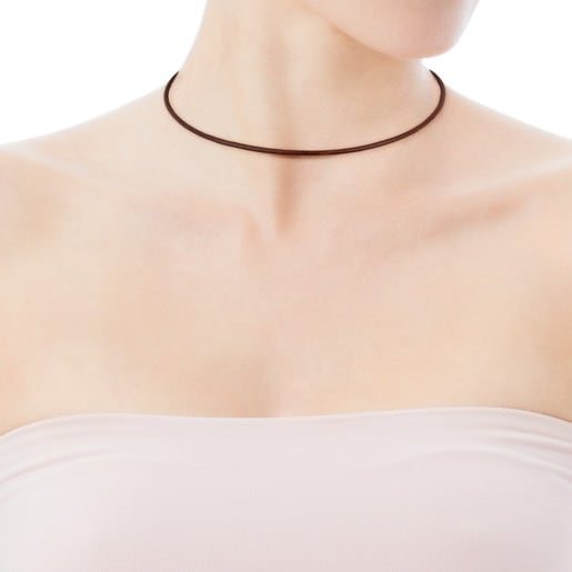 Para destacar tu cuello y hacer juego con el brillo de tu cabello, busca en Tous esta delicada y exclusiva Gargantilla, elaborada en cuero marrón de 0,2 cm de espesor, con un delicado y precioso cierre de oro, con un tamaño de 45 cm.