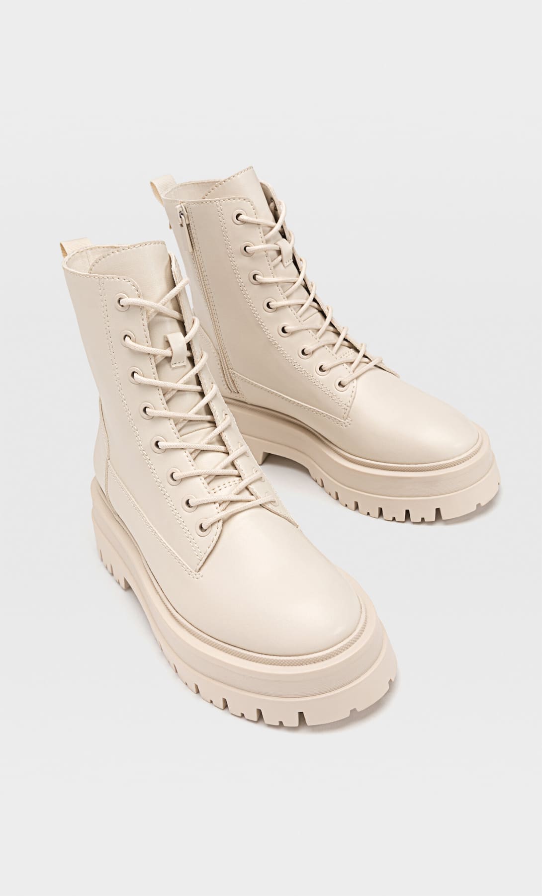 En la sección de nueva temporada de Stradivarius, una de las cosas que más destacan es el calzado. En este caso, tenemos que elegir estos originales botines, de un bonito tono crudo, que combinan con todo, planos y con cordones delanteros. Cómodos y casuales, te acompañarán allá donde vayas por solo 39,99 euros. Pero eso no es todo, sigue leyendo y descubre todas las novedades interesantes.