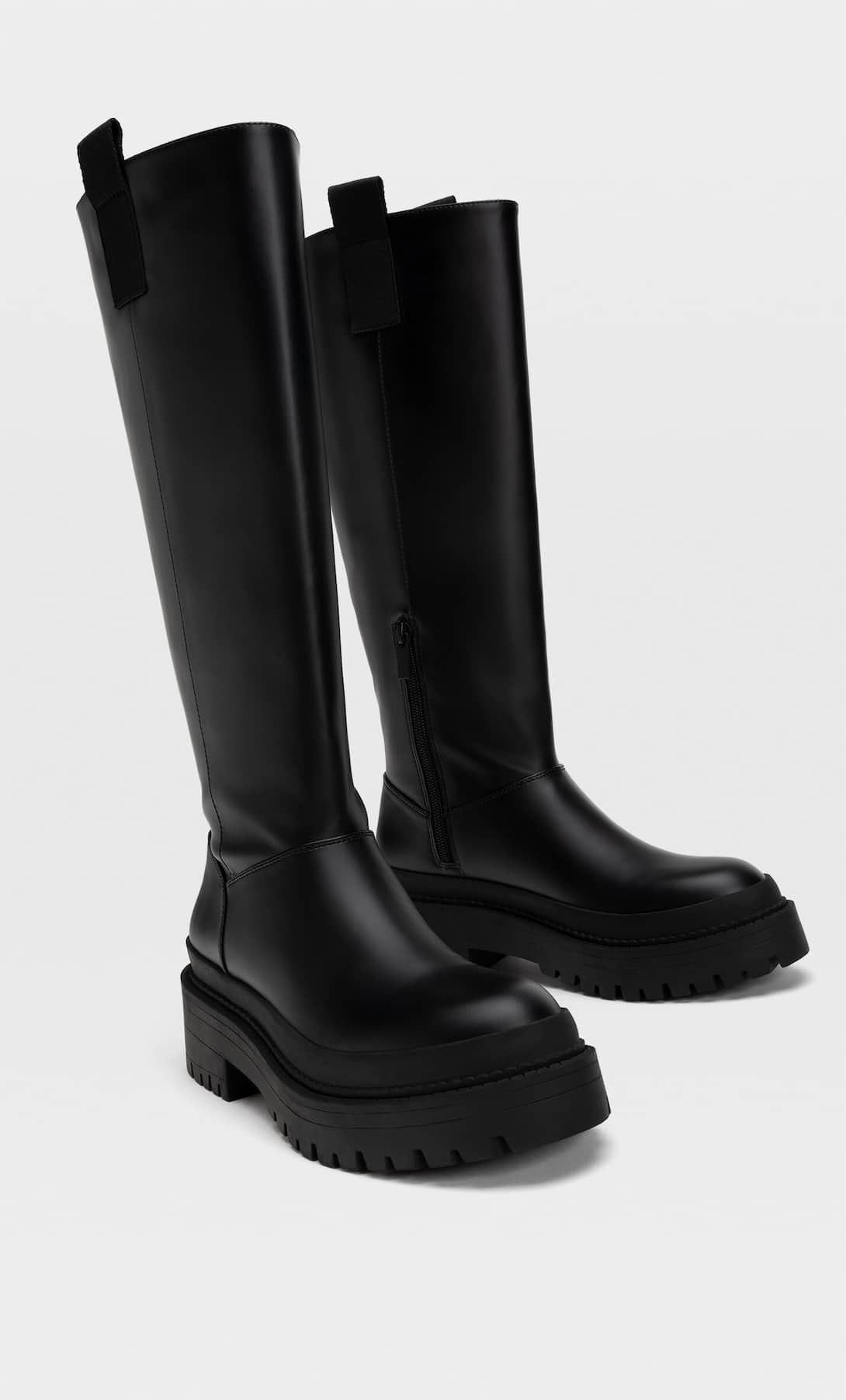 Si en vez de botines a ti lo que te gustan son las botas, sin duda en Stradivarius también podrás hacerte con las mejores opciones. En este caso, elegimos estas botas engomadas por completo que llaman la atención por su intenso tono negro, aunque también podrás encontrarlas en beige. Altas y con suela track, para mayor comodidad, las puedes conseguir por un precio de 45,99 euros esta nueva temporada.