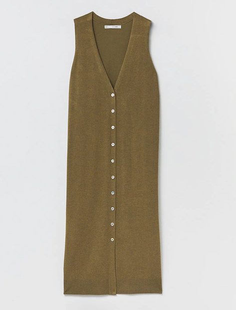 Los chalecos son una prenda capaz de marcar estilo en cualquier look. La marca Sfera ha lanzado este modelo original y diferente, largo por debajo de las rodillas, lo que le da un efecto túnica muy sofisticado.