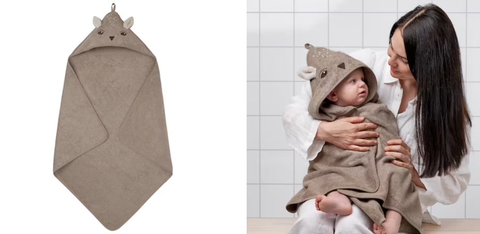 Desde Ikea han decidido no quedarse solo en una tienda de decoración. Por ello, una de las cosas que más llaman la atención de su sección de novedades es esta bonita toalla con capucha especialmente pensada para los más pequeños. Con un bonito tono neutro y forma de animal, te ayudará a que tu peque esté seco en menos tiempo por tan solo 9 euros. Sin duda, una buena forma de terminar el baño.