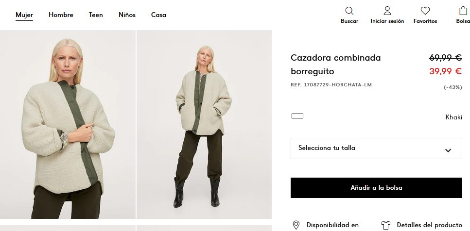 La cazadora cuenta con un diseño medio y es de la colección Committed. Además, cuenta con un tejido de borreguito, diseño combinado, diseño recto y un cuello redondo. Inclusive, es de manga larga, tiene dos bolsillos laterales e interiores. Cuenta con un forro interior acolchado y un cierre de botones en la parte delantera. Entonces, si la desean comprar solo tienen que entrar a Mango por un precio de 39,99 €.