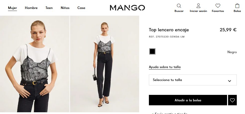 Es otra de las prendas que pertenece a la colección committed. Además, cuenta con un diseño estándar, cuello escotado, tejido ligero y un diseño recto. Es de un tejido mezcla de algodón y de encaje para generar un toque único a la prenda. Inclusive, es de tejido semitransparente, diseño crop, sin mangas y tirantes finos. Entonces, si desean comprar esta prenda solo tienen que entrar a Mango por 25,99 €.