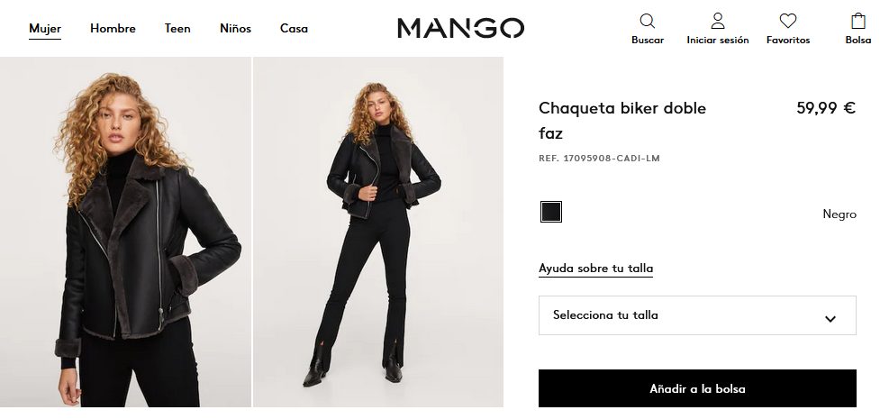 La chaqueta cuenta con un efecto piel, un diseño biker, corto y recto. Además, es de cuello pico con solapa. El estilo de las solapas es con muesca, manga larga y tiene dos bolsillos laterales de cremallera. inclusive, en la parte interior es de pelo, es decir, tiene efecto pelo. Tiene un cierre de cremallera en la parte delantera. Entonces, si desean comprar esta prenda solo deben entrar a Mango por 59,99 €.