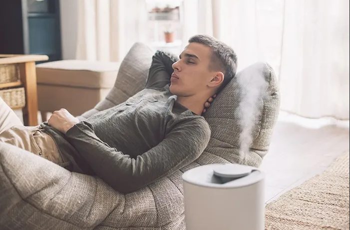 Además, los síntomas del resfriado y la fiebre pueden empeorar por la noche, ya que al estar tumbado te encuentras en una posición comprometida. El aire frío y seco, además de la postura de dormir boca abajo. Puede afectar a la acumulación de mucosidad en la cavidad nasal y la falta de un drenaje adecuado al estar tumbado. Por lo que, crea esa acumulación de mucosidad y exacerba los síntomas del resfriado y la gripe. Un humidificador puede ayudar a aliviar esto al añadir más humedad al aire.