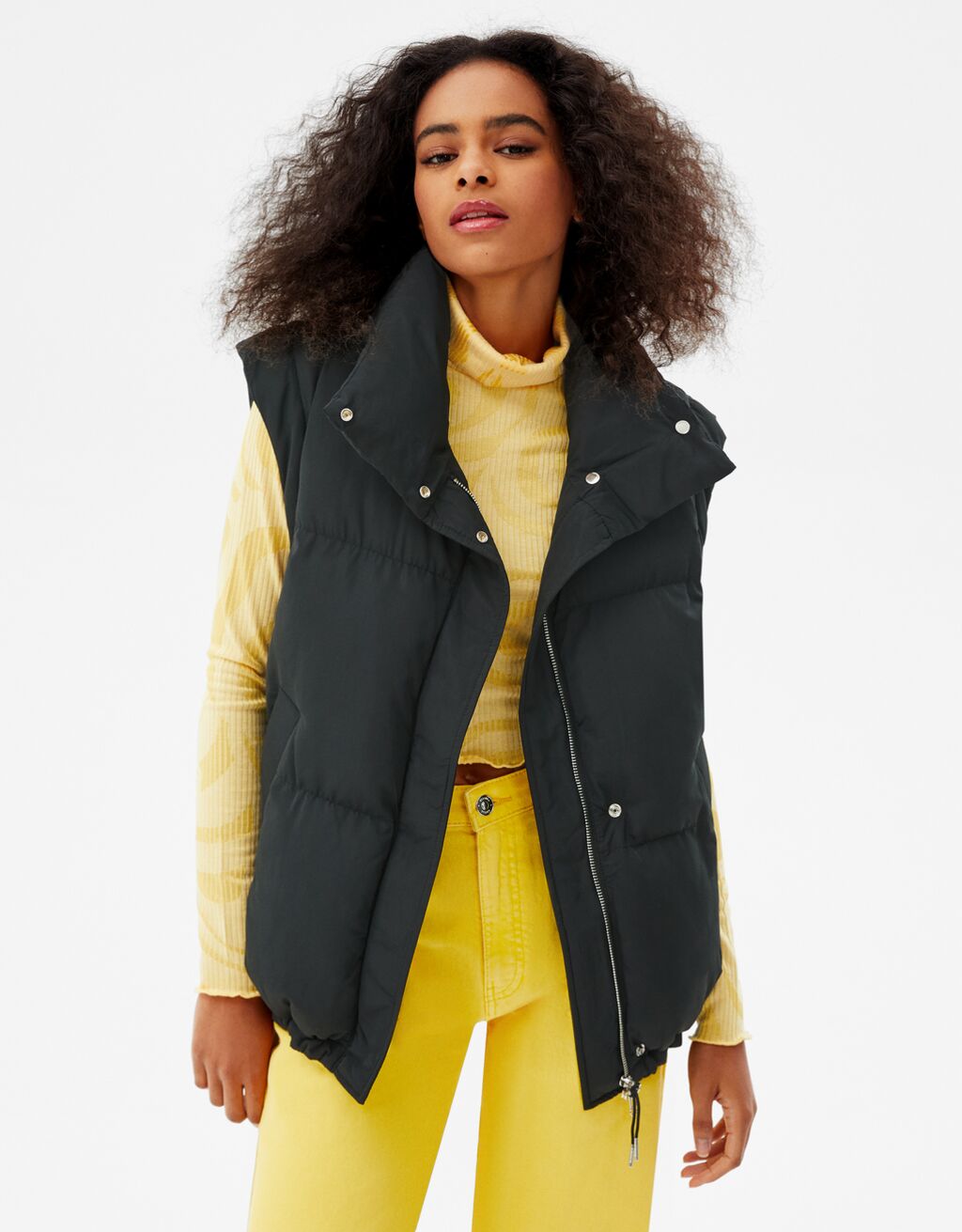 Otra de las prendas que seguiremos vviendo con más fuerza que nunca en el mundo de la moda son los chalecos. Este es el motivo de que este, de Bershka, nos haya dejado tan buen sabor de boca. De efecto nylon y un bonito tono negro, aunque está disponible en varios colores neutros, su acabado acolchado terminará de convencerte. Apto para elevar cualquier look, ahora puede ser tuyo por tan solo 29,99 euros.