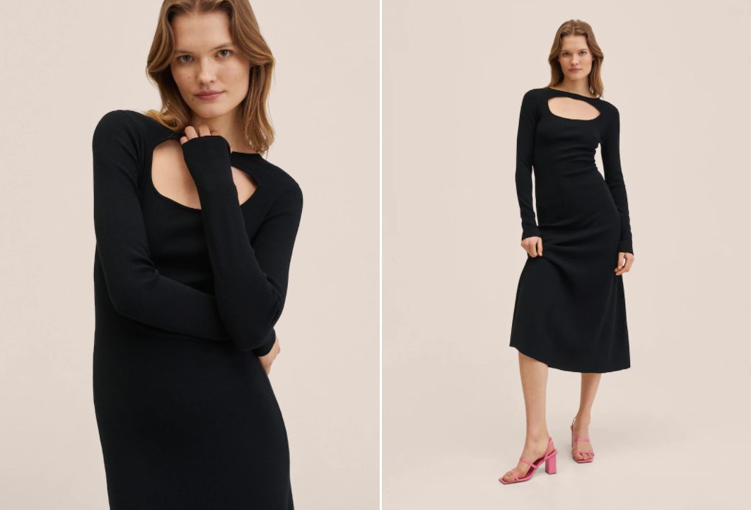 Otro de los vestidos que más llaman la atención de las novedades de Mango es este de punto. De estilo clásico pero con el detalle de abertura en la parte delantera central, conseguirá convertirse en el centro de todas las miradas. Además, su corte midi estiliza y su tejido se adapta de forma perfecta al cuerpo. Todo ello por solo 49,99 euros.