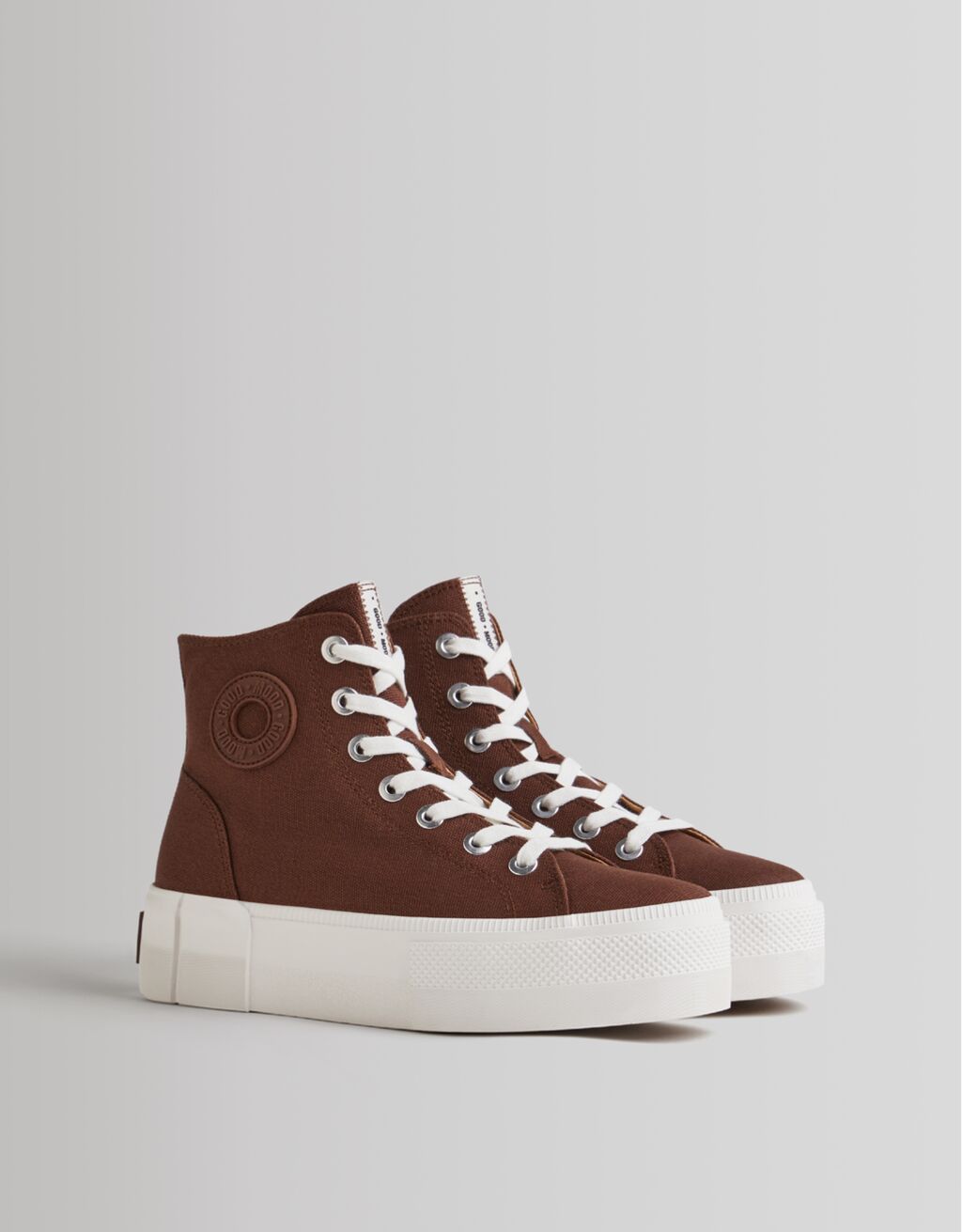 No podemos dejar por fueras los calzados deportivos y por supuesto Bershka también los tiene. Dirígete a una de sus tiendas y busca la Zapatilla abotinadas plataforma, con una cómoda altura de solo 4 cm. elaboradas totalmente en algodón, para una comodidad inigualable en tus pies.