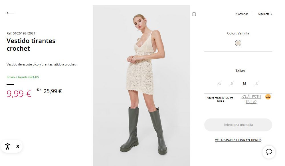 Es uno de los grandes vestidos que las mujeres deben de tener en su closet, dado que estos ofrecen una sensualidad en todo momento. Además, el vestido es de escote pico y tirantes tejido a crochet. Por lo que, es perfecto de usar en cualquier fiesta de noche por la comodidad que este genera. Entonces, si desean comprar este hermoso vestido solo deben entrar a Stradivarius por un precio de 9,99 €.