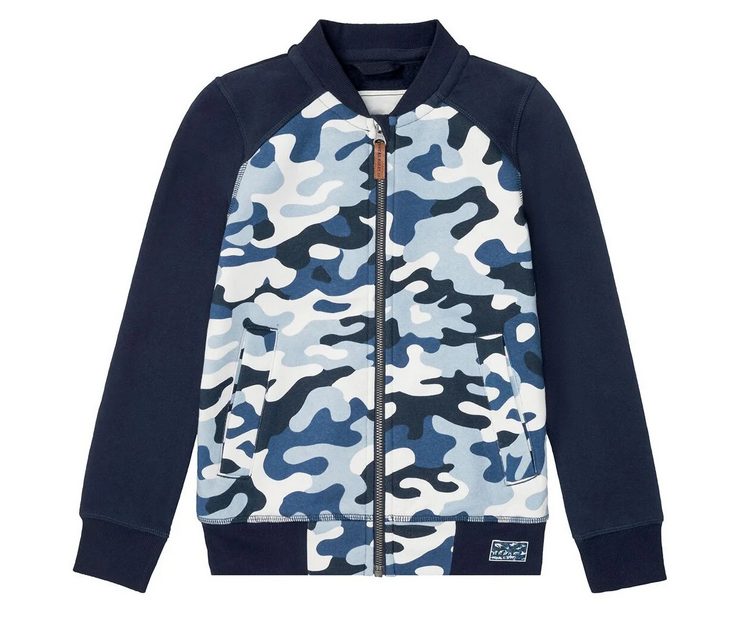 Los peques también pueden aprovechar las ofertas casi regaladas de Lidl. Una de las prendas más ideales es esta chaqueta tipo sudadera con estampado de camuflaje en tonos azules. Lleva canalé elástico en los puños y en la cintura, bolsillos laterales y cierre con cremallera con protección para la barbilla. Está fabricada en 70% algodón y 30% poliéster reciclado, por lo que cuenta con el certificado Recycled Claim Standard. Está disponible en tallas desde la 122/128 a la 158/164, por solo 5,99€.