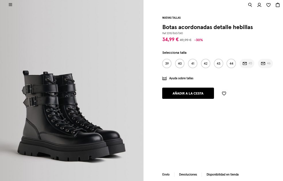 Son unas botas para hombres que son acordonadas en color negro. Además, cuenta con unos detalles de tiras con hebillas y cierre mediante cremallera. Inclusive, posee una suela con track para una mejor comodidad en todo momento. Entonces, si desean comprar estas hermosas botas solo deben entrar a Bershka por 34,99 €.