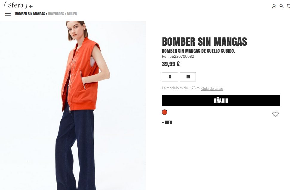 Es un hermoso bomber sin mangas de cuello subido, perfecto de usar con otra prenda de la misma tienda. Por lo que, es considerada otra de las prendas muy solicitadas por las mujeres. Además, esta ofrece un estilo único en comparación con otras prendas ofrecidas por otras tiendas. Por lo que, si desean comprarla solo deben entrar a Sfera por un precio de 39,99 €.