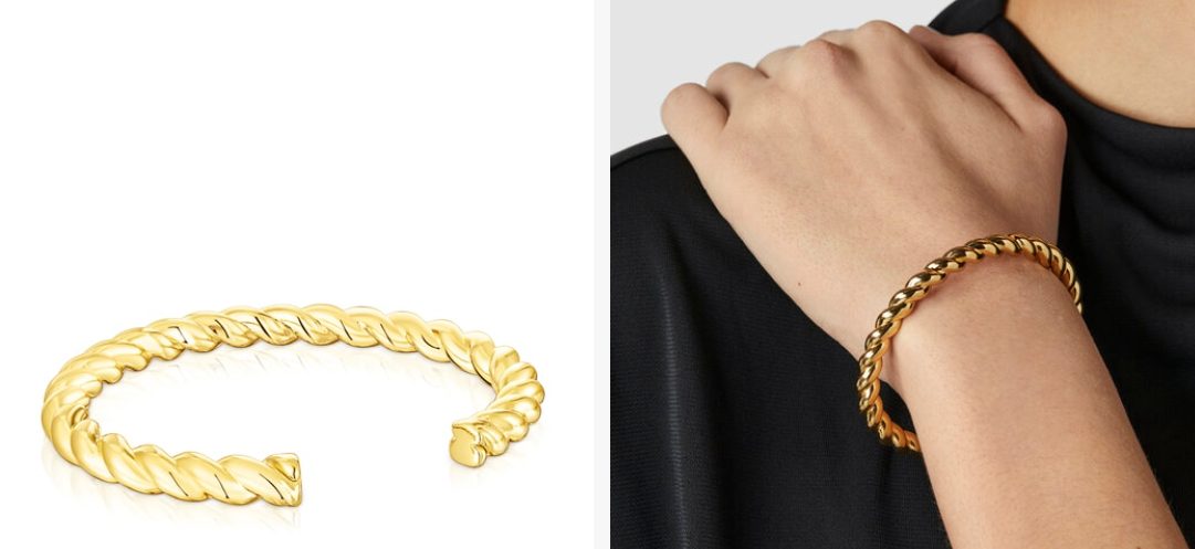 Esta pulsera de la colección Twisted es sin duda una de las más elegantes que podrás encontrar en la sección de novedades de Tous. De diseño rígido y elaborada en plata vermeil, tiene además la capacidad de atraer todas las miradas. Su precio, a su vez, también sorprende. Está ya disponible por 279 euros.