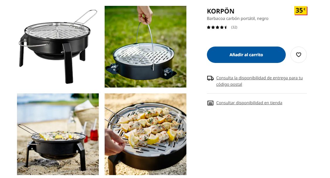 Si deseas realizar una pequeña barbacoa en tu jardín o te provoca ir de camping cualquier fin de semana y disfrutar de una deliciosa parrilla, busca en Ikea esta práctica y cómoda barbacoa portátil, en color negro. Solo requieres los carbones y la carne, colocarla y limpiarla son de extrema facilidad.