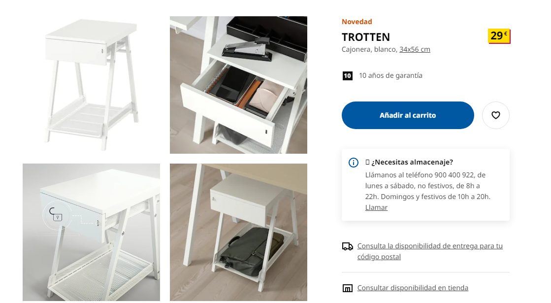 Para guardar cualquiera de los artículos del hogar, desde tu delicadas prendas de vestir, hasta algunas de las herramientas de trabajo, Ikea tiene en cada una de sus tiendas esa cómoda y practica cajonera, en color blanco y sus dimensiones 34 x 56 cm.