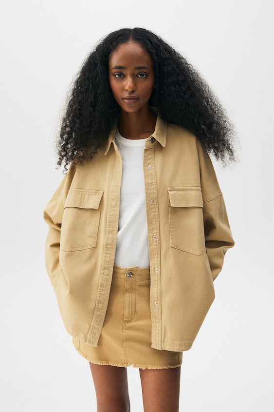 Para lucir cualquier día en primavera y en cualquier época del año, las tiendas Pull&Bear tiene la Camisa oversize arena. Para cualquier evento, algo casual, puedes lucirla sola o acompañada con tu mejor top o alguna de tus camisetas.