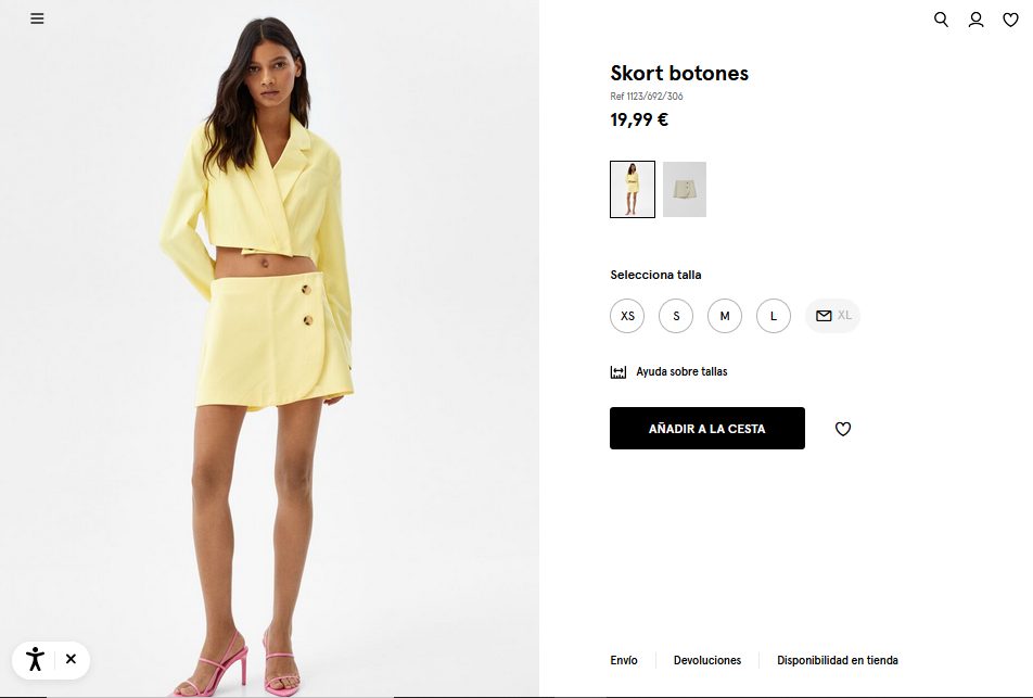 Es un hermoso Skort de botones, perfecto de usar con otra prenda de la misma tienda. Por lo que, es considerada otra de las prendas muy solicitadas por las mujeres. Además, esta ofrece un estilo único en comparación con otras prendas ofrecidas por otras tiendas. Por lo que, si desean comprarla solo deben entrar a Bershka por un precio de 19,99 €.
