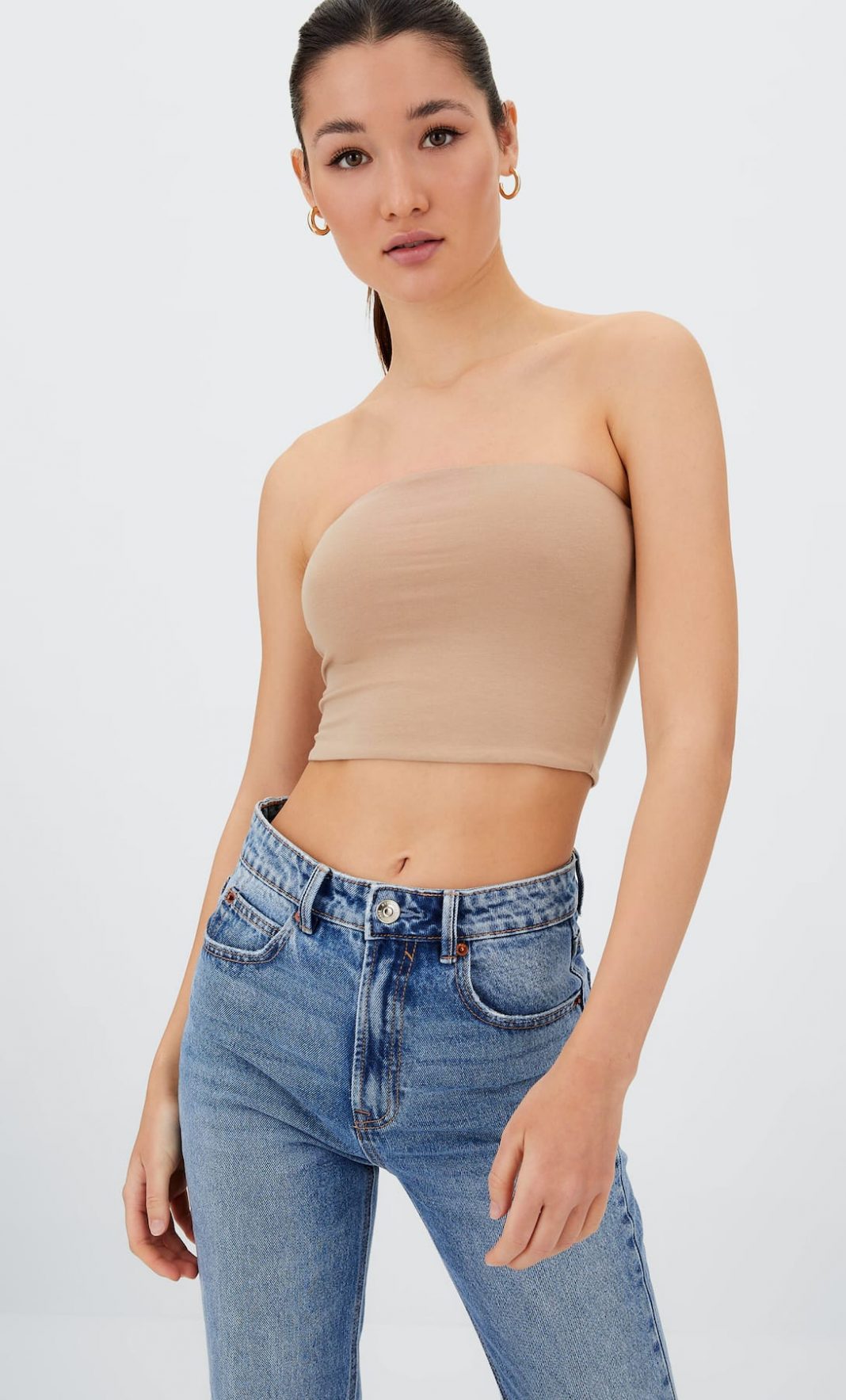 El Bandeau básico que conseguiras en las tiendas Stradivarius, es un top bastante corto, con el cual modelaras toda tu silueta, destacarás tu bronceado y resaltaras cada una de las curvas de tu cintura.