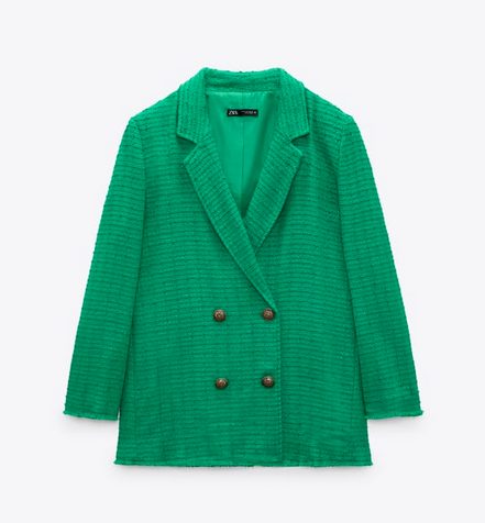 Siempre es buen momento para incluir una blazer en nuestro armario. Esa prenda capaz de aportar estilo instantáneo a cualquier look, desde el más casual hasta el más arreglado. Esta blazer de Zara nos encanta por su forma estructurada, y los detalles de acabados desflecados, que le dan un aire más original y diferente. Es de manga larga, con cuello de solapa y tiene un cierre cruzado con cuatro botones. Esta´disponible en dos llamativos y primaverales colores: verde y rosa. Su precio es de 49,95€.